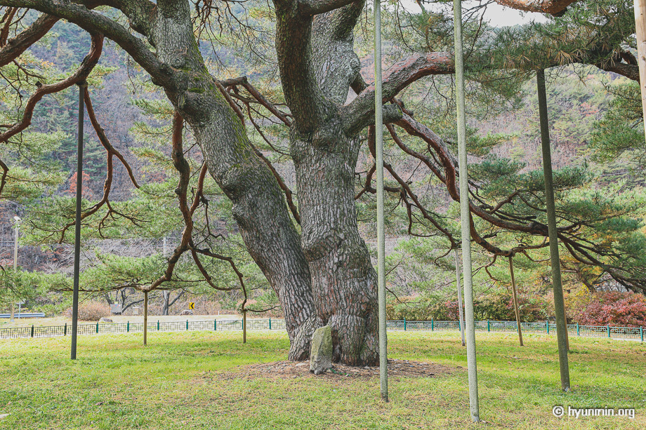 정부인송(정이품송의 부인) 위치 : 충북 보은군 외속리면 서원리 49-4 지정 : 1988년 뿌리에서 두 갈래의 수간(큰 줄기)가 굵직하게 휘어 오르며 가지들이 마치 춤추는 여인의 치마폭처럼 드넓게 펼쳐져 있다. 곧고 굵은 두 가지는 힘이 넘치고 아직도 젊은 혈기를 보여주는 느낌이 든다. 알려진 바로는 600년정도 추정하고 있지만, 경험으로 미루어 볼때 400년 정도 되지 않을까 싶다. 보은 속리산 법주사와 국립공원을 방문하는 길이라면 이곳 서원리 소나무도 들려볼만 하다. 길가에 있어 쉽게 다가설 수 있고, 우리나라 소나무의 멋을 한껏 느낄 수 있다.